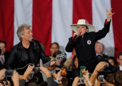 Gaga, tearful Miley Cyrus lead celebs mourning Clinton