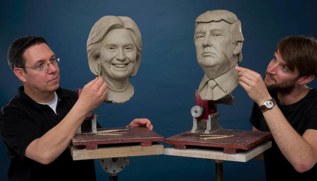 wax head for the Trump figure, with a hair inserter slowly