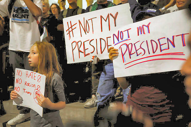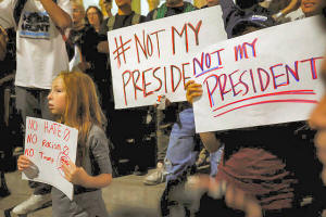 as "Impeach Trump" and "Not my president."