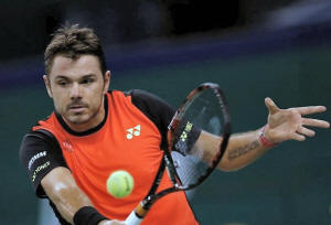 Stan Wawrinka of Switzerland plays against Gilles Simon of France.