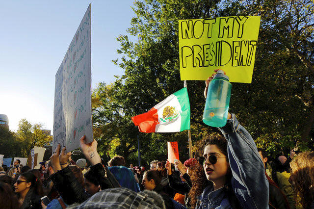 People take part in a protest against Republican president-elect