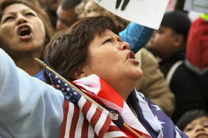 They chanted: "Say it loud, say it clear, immigrants are welcomed here,"