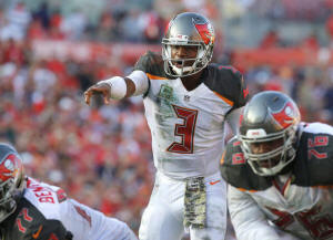 Buccaneers quarterback Jameis Winston (3) points against the Chicago