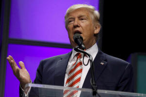 Republican Donald Trump delivers remarks at the Shale Insight energy