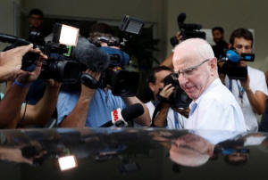 Patrick Hickey, leaves a police station in Rio de Janeiro, Brazil,