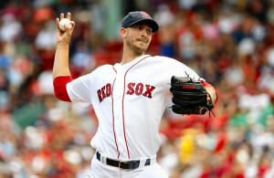 Boston Red Sox starting pitcher Rick Porcello (22) delivers against
