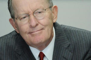 Senator Lamar Alexander (R-TN) smiles as he addresses the Reuters