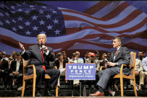retired U.S. Army Lieutenant General Michael Flynn during a campaign