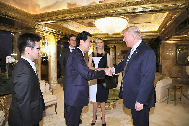 Abe accompanied only by an interpreter and Trump by his daughter Ivanka,