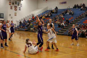 Then Babbs stole the ball midcourt from Bailey and the Lady Hawks
