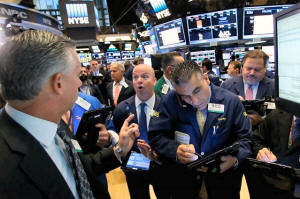 Traders work on the floor of the New York Stock Exchange (NYSE) in