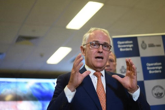 Australia's Prime Minister Malcolm Turnbull speaks to the media
