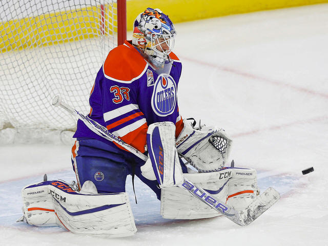 Edmonton Oilers goaltender Cam Talbot (33) makes a save during