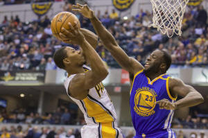 The Warriors led 34-21 after one quarter, limiting the Pacers to 10