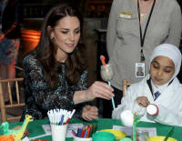Britain's Duchess Kate gives
