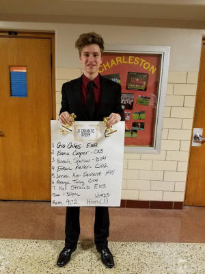 Junior Ethan Keller won the junior varsity dramatic interpretation event at Charleston Saturday in the 8-team tournament.