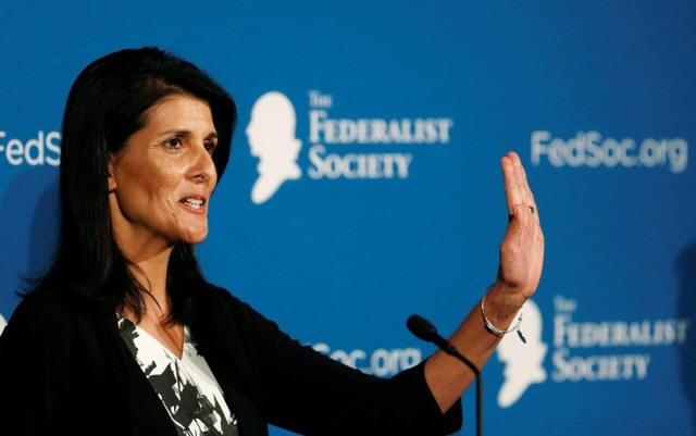 Republican South Carolina Governor Nikki Haley delivers remarks at the