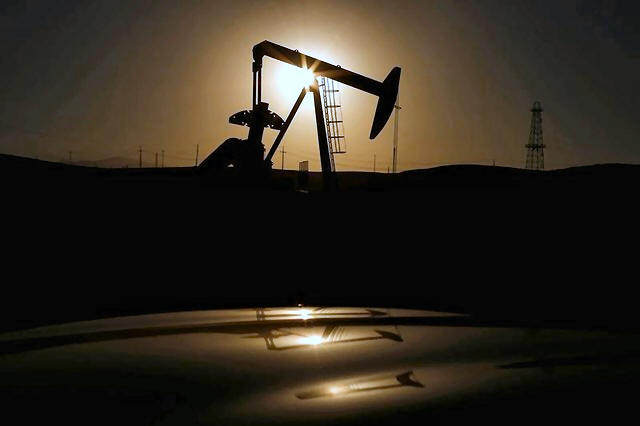 A pump jack is seen at sunrise near Bakersfield, California October