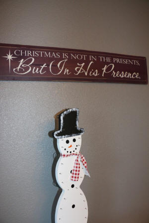 Rentmeister also hosts Christmas now. She nods to a sign in her
