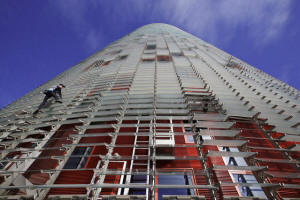the Torre Agbar, a glass-covered office building known for its