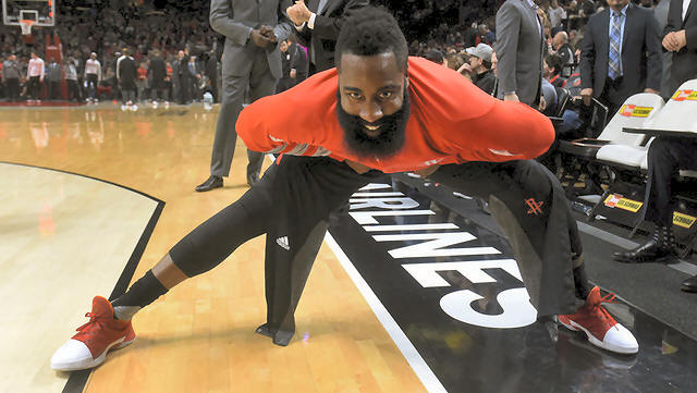 Rockets guard James Harden (13) stretches before the game against