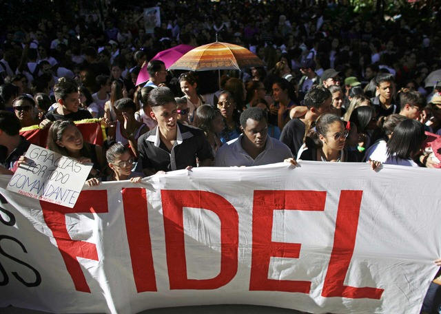 Castro as they march to Revolution Square in Havana, Cuba, November 28,