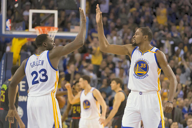Warriors forward Draymond Green (23) and forward Kevin Durant (35)