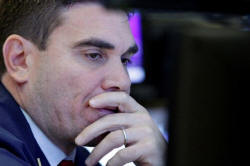A specialist trader works at his post on the floor of the New York