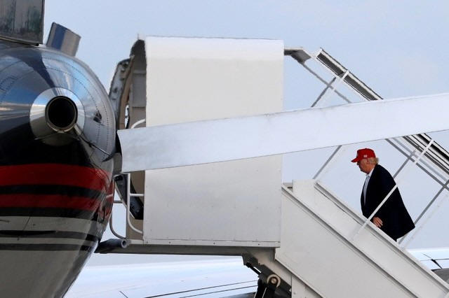 U.S. President-elect Donald Trump boards his aircraft in West Palm