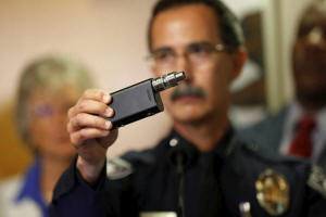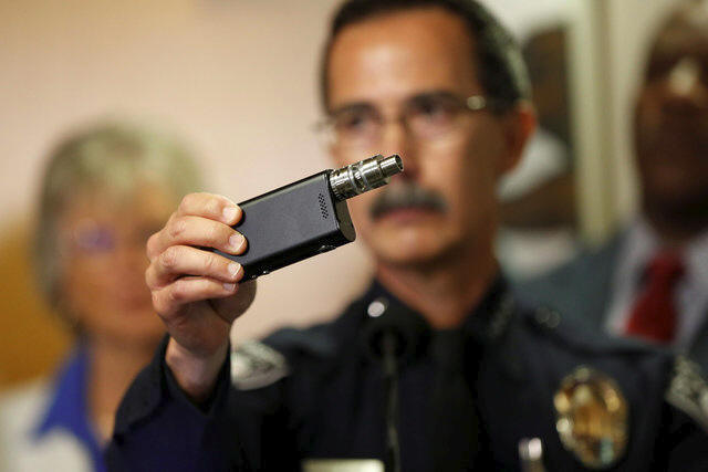 Police Chief Jeff Davis holds up a vape similar to the one held by