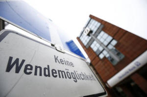 A road sign marking a dead end and reading 'No turn possible' is