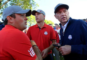 States talk with Team USA captain Davis Love III in the morning