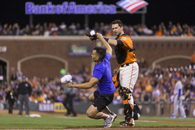 inning against the Los Angeles Dodgers at AT&T Park. Mandatory
