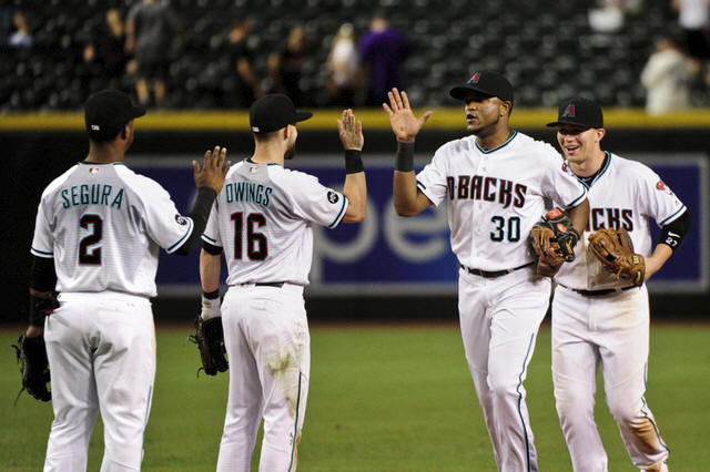 Diamondbacks shortstop Chris Owings (16) and second baseman Jean
