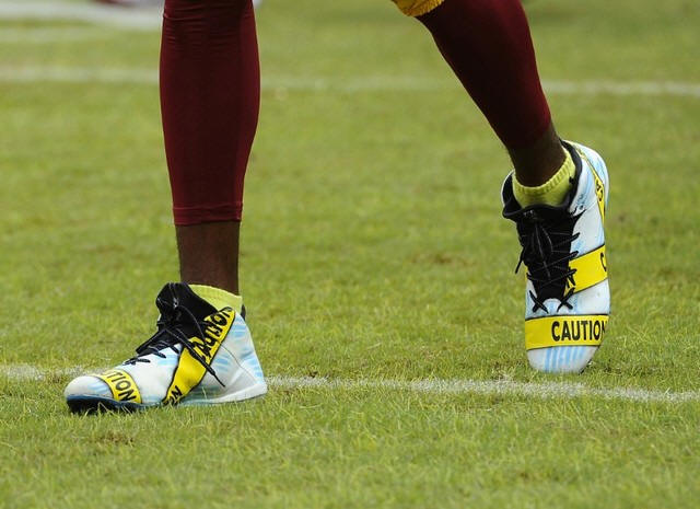 custom-made cleats during Washington's game at FedEx Field in