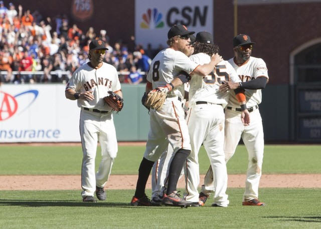 (16), shortstop Brandon Crawford (35) and center fielder Denard Span