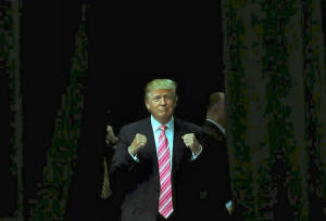 Republican presidential nominee Donald Trump arrives at a campaign