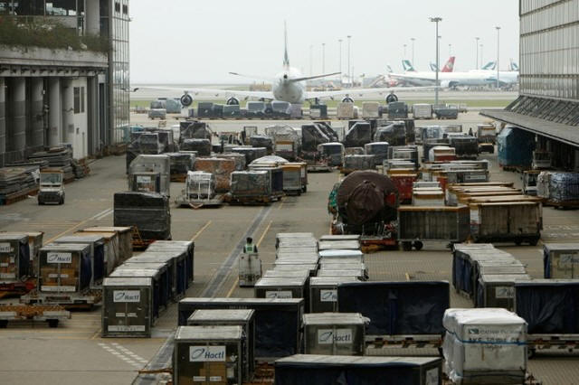 Cargo is seen at HACTL SuperTerminal 1 at the Hong Kong