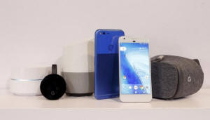 (L to R) Google Wifi, Google Chromecast Ultra, Google Home, Google