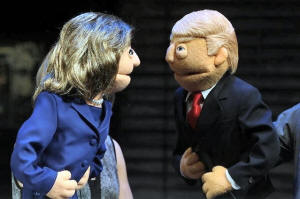 Puppets in the likeness of Democratic presidential nominee Hillary