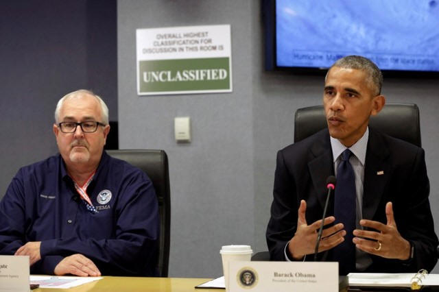 President Barack Obama talks to the media about Hurricane Matthew next