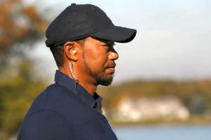 Team USA vice-captain Tiger Woods on the tenth green during the