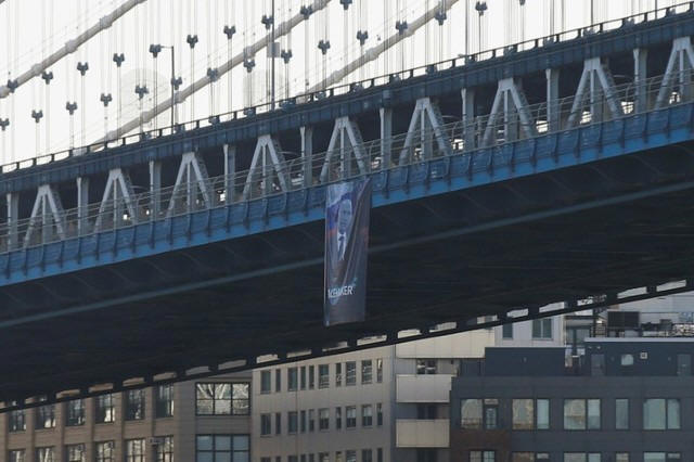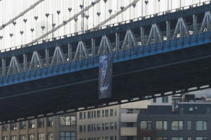 suspended from the Manhattan Bridge by solidarity groups during