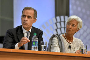 Bank of England Governor Mark Carney (L) and IMF Director General