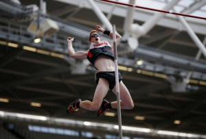 Canada's Shawn Barber in action during the men's pole vault final.