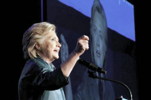 Democratic presidential nominee Hillary Clinton speaks at a Women