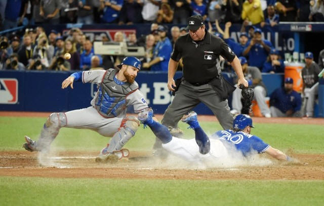 Blue Jays third baseman Josh Donaldson (20) scores the winning