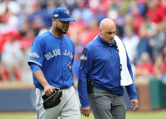 Injured pitcher Liriano replaced on Blue Jays roster [October 10, 2016] (The Sports Xchange) - Pitcher Francisco Liriano was replaced on the Toronto Blue Jays roster for the remainder of the American League Division Series (ALDS). Liriano is likely to be re-evaluated daily by the Blue Jays with the expectation that he could be back within a week. |