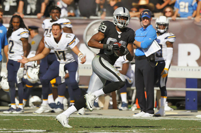 Raiders wide receiver Michael Crabtree caught three passes for 47