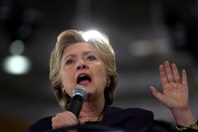 Democratic presidential nominee Hillary Clinton speaks at a voter